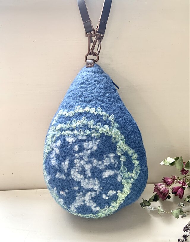 羊毛フェルトのカラフルなしずくポシェット(ネイビー)
