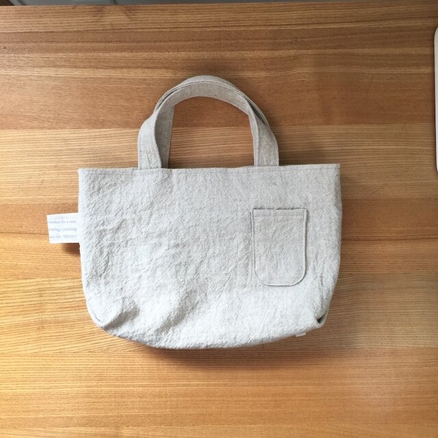 洗いをかけたシワとムラのある特殊加工されたリネンで、ナチュラルな風合いのあるトロンとした表情のバッグになりました。