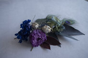 クジャクの羽根と紫の菊などをあわせました