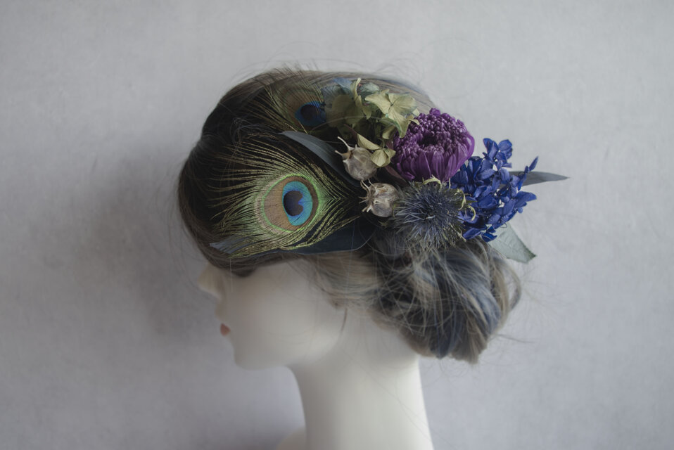 ヘッドドレスは、バラバラのパーツでお作りしています 着け方次第で印象が変わり、自由にアレンジできます