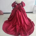 高品質!赤 カラードレス Aライン ベアトップ 取り外し袖 ふっくら柔らかなバックリボン トレーン 花嫁/二次会