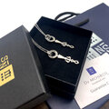 時計の長針をアンティーク風味にデザインしたペアネックレス。