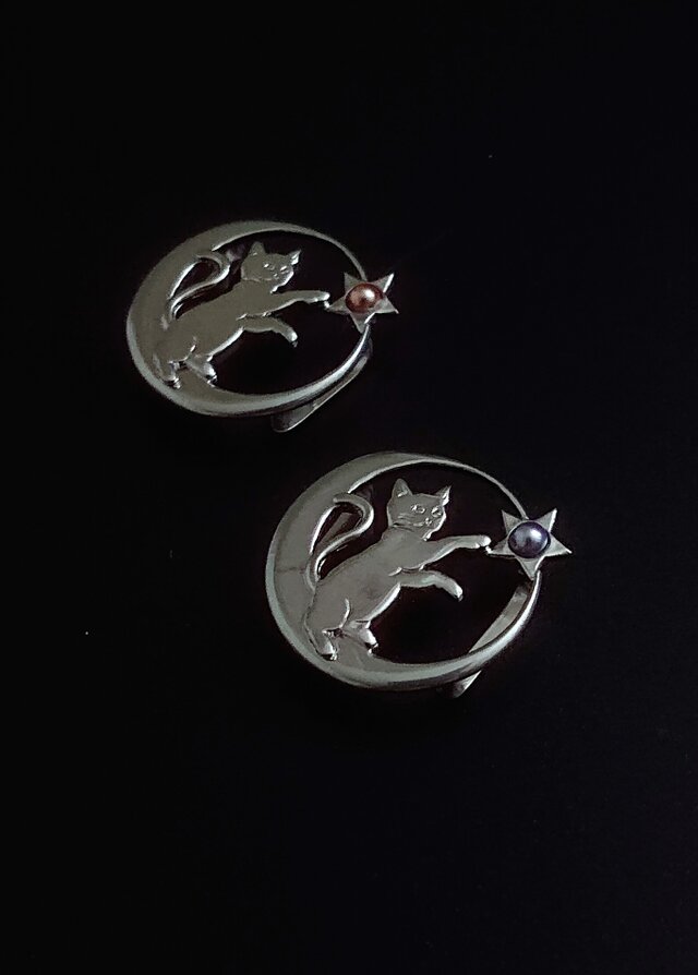 星に手を伸ばす猫帯留め(紫)