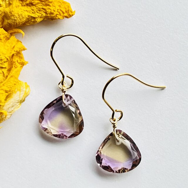 今回のアメトリンは宝石質でバイカラーのバランスがとても美しいピアスになります♪