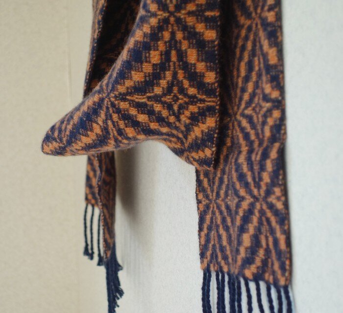 オレンジと紺の組み合わせでぱきっとした柄に織りました。