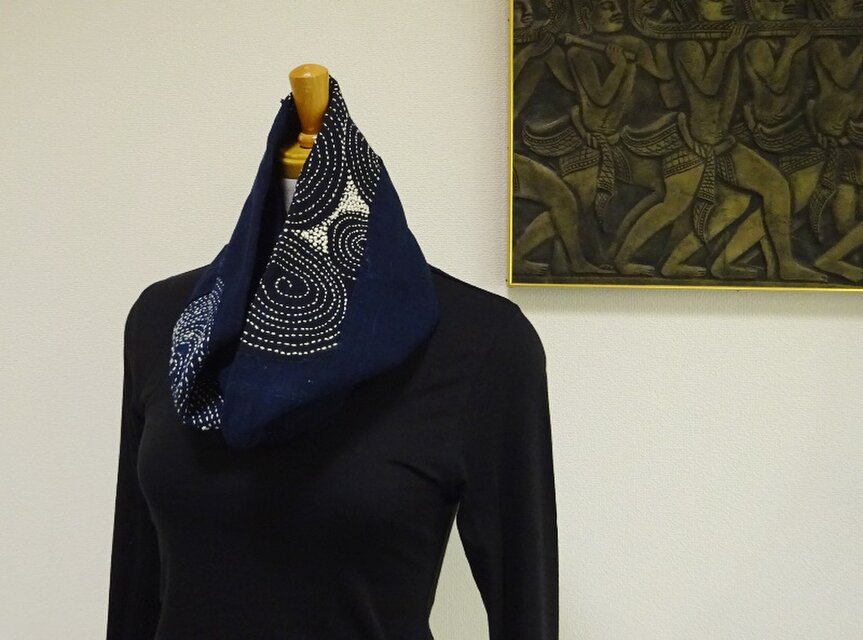 これからの季節にぴったりのシッカリとした中厚手の藍染め木綿のスヌードです。