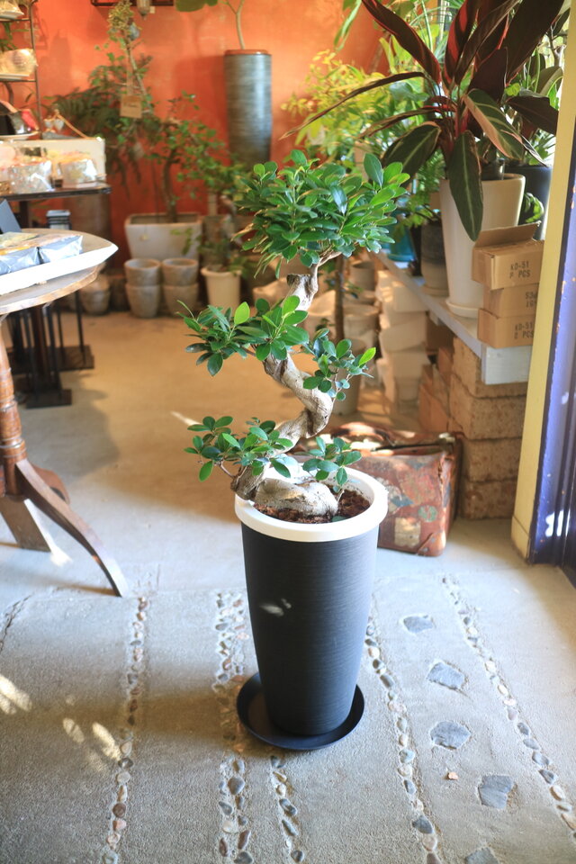 見た目は陶器に見えますが、FRP(強化プラスティック)製です。受け皿付き。