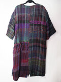 【個性的】さをり織りの艶やかカラフルロングコート ノーカラー