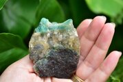 エメラルドのグリーンカラーがぎっしりと入った原石