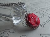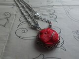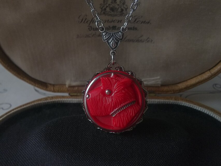 1940年代頃ヴィンテージ、約23㎜ほどの赤のテリア犬のGlassボタンでお作りしましたネックレスです。