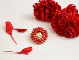 赤が可愛いレトロなお花のブローチ。