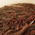 山野に自生するアカネ科のつる性の多年草です。「赤い根」から「あかね」に転じたそう。太いひげ状の根を煮出し、古くから染料や薬としても用いられてきました。