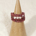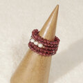 本真珠(淡水)とロードライトガーネットの5連リング(指輪のサイズ:フリーサイズ、形状記憶ワイヤー、ホワイト、天然石)