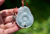 大粒★ラッキーコイン★ミャンマー翡翠 マクラメネックレス769