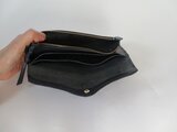 小銭入れとお札入れ(カード入れを含む)が完全に独立しているため、たくさん入れても影響し合わないので使いやすいです。また少ないときはかなり薄型になります。大きい小銭入れとお札入れを合体させたものと考えて下さい。