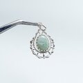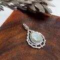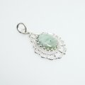 淡いグリーンと複雑な模様が美しい日高翡翠を、ドロップレースデザインのエレガントなペンダントに仕上げました。