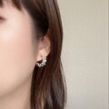 シルバーフープにランダムに巻き付け、ワントーンでクールな雰囲気たっぷりに仕上げました。
