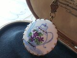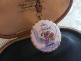 英国より仕入れをしましたボタン、約32㎜ほどの大きな陶磁器製ボタンを用いてお作りしましたネックレスです。