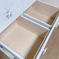 デメリットとしましては「汚れ」といった部分が気になる方は多いと思いますが、当ショップではシャビー感を再現した塗装をしておりますので、汚れが目立ちづらくなっております。真っ白な家具を購入するのは不安という方にとてもオススメです。