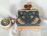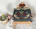 ウイリアムモリス いちご泥棒で作りました木玉親子がま口ミニ財布です