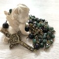 遅くなり大変申し訳ありませんm(_ _)m いつもとても素敵なロザリオをありがとうございます(*^^*)今回もセンターメダイと十字架と石のセンスがとても良くバランスが素敵です!大切にします。ありがとうございますまたよろしくおねがいします。