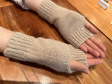 ベビーアルパカ100%の毛糸で編まれた指なしミトンです。