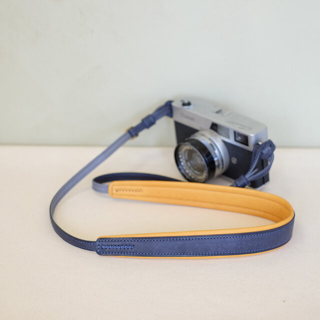 やわらか 革のカメラストラップ(名入れ可) ネイビー