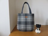 ウールのチェック生地でふっくらしたトートバッグを作りました。