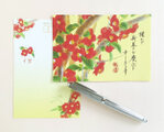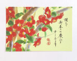真っ赤な木瓜の花の年賀状5枚セットです。