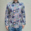 中肉厚の綿生地に昭和レトロな看板柄が描かれた粋なシャツ