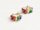 秋冬限定【チタンピアス】虹色 レインボー 天然石/深み くすみカラー カラフル 秋 冬