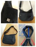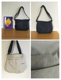素朴な風合い、ナチュラルな雰囲気、の綿麻キャンバス生地 黒色 で 斜めがけバッグを、作りました。