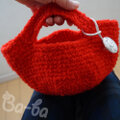 真っ赤なウール100%毛糸を、かわいいバッグに編み上げました。
