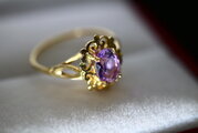 絶品 英国 1900年初中期 ゴールド リング 指輪 ビンテージ アンティーク アメジスト 純金 純金率375 宝石 鑑定書付と大変希少な一品でございます。