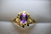 英国 1900年初中期 ゴールド リング レディース 指輪 ビンテージ アンティーク アメジスト 純金 純金率375 宝石 J6