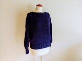 ナス紺に近いダークパープルの毛糸を使って、セーターを作りました。
