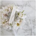 お花はアーティフィシャルフラワーのフランネルフラワー、紫陽花、他ホワイトのお花たちをたっぷりと使って・・