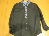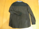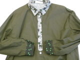 前立てと袖口と後ろヨークをUSA生地の猫の目柄と猫柄にしてます。ネコ部分以外は国産の綿生地を使っております。