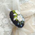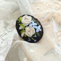 黒リネンにオフホワイトの薔薇をメインに小花をリボンで刺繍したブローチです。