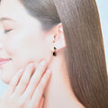 和名「菫青石/きんせいせき」、スミレ色のアイオライトがゴールドで縁取られて耳元で小さく揺れるピアスです。
