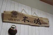 指定のサイズの無垢の一枚板にオリジナルデザインの文字を機械とノミで彫りこみます。