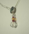ラウンドシェイプのルビー・ムーンストーンがチャームとして繋げてあります。