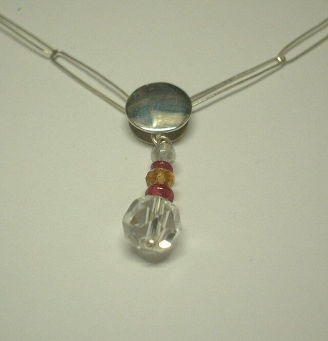 円盤型のパーツの下に ミラーカットの水晶・シトリントパーズ・