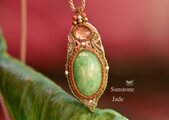 大地と太陽★サンストーン+翡翠★マクラメネックレス808