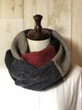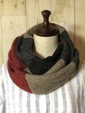楽チン♪かぶるだけ★タムニットのパッチワークスヌード14(ワインレッド×ブラック×チャコール×グレイッシュブラウン)一点ものです