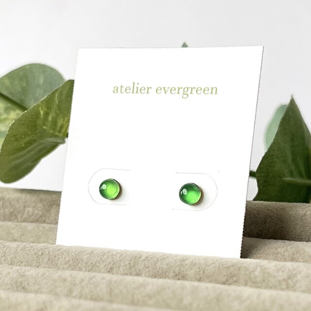 グリーンオニキスには女性の若さと美しさを永遠に保つという言い伝えがあるそう。確かにこんなにキレイで透明感のあるグリーンが耳元にあると肌ツヤもキレイに見えそうです。