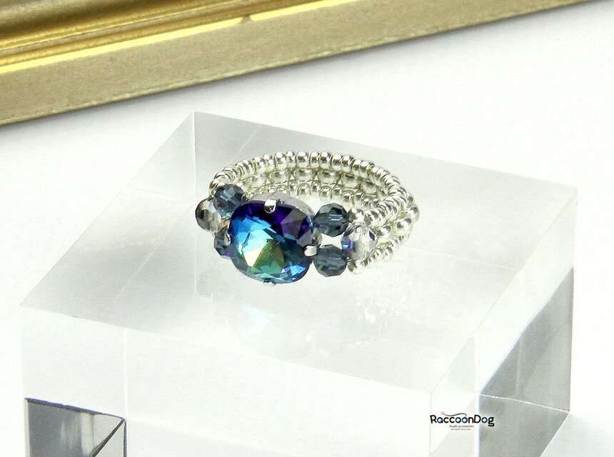 ビーズ,リング,コスチュームジュエリー,ビーズアクセサリー,ビーズリング,プレシオサ,クリスタル,ブルー