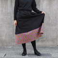 シックな黒のビエラ生地とカンガを合わせたことにより、独特の存在感のあるスカートに仕上がっています。シンプルなトップスと合わせるだけで、オシャレに可愛く着れます。