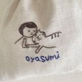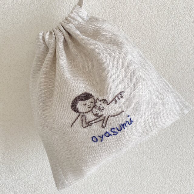 女の子とネコちゃんの優しい絵柄の表情に、ほっこりした気持ちになります…♪ かわいらしい巾着、ありがとうございました! また素敵な刺繍を楽しみにしております(^^)