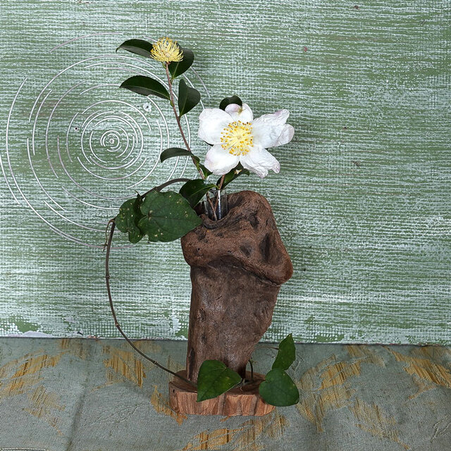 ナチュラル感たっぷりな優しさで花を引き立ててくれる流木の花器です。